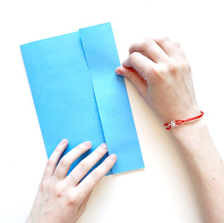 Turn colored paper to the width of its length and fold one side of the paper sheet past half of its width.